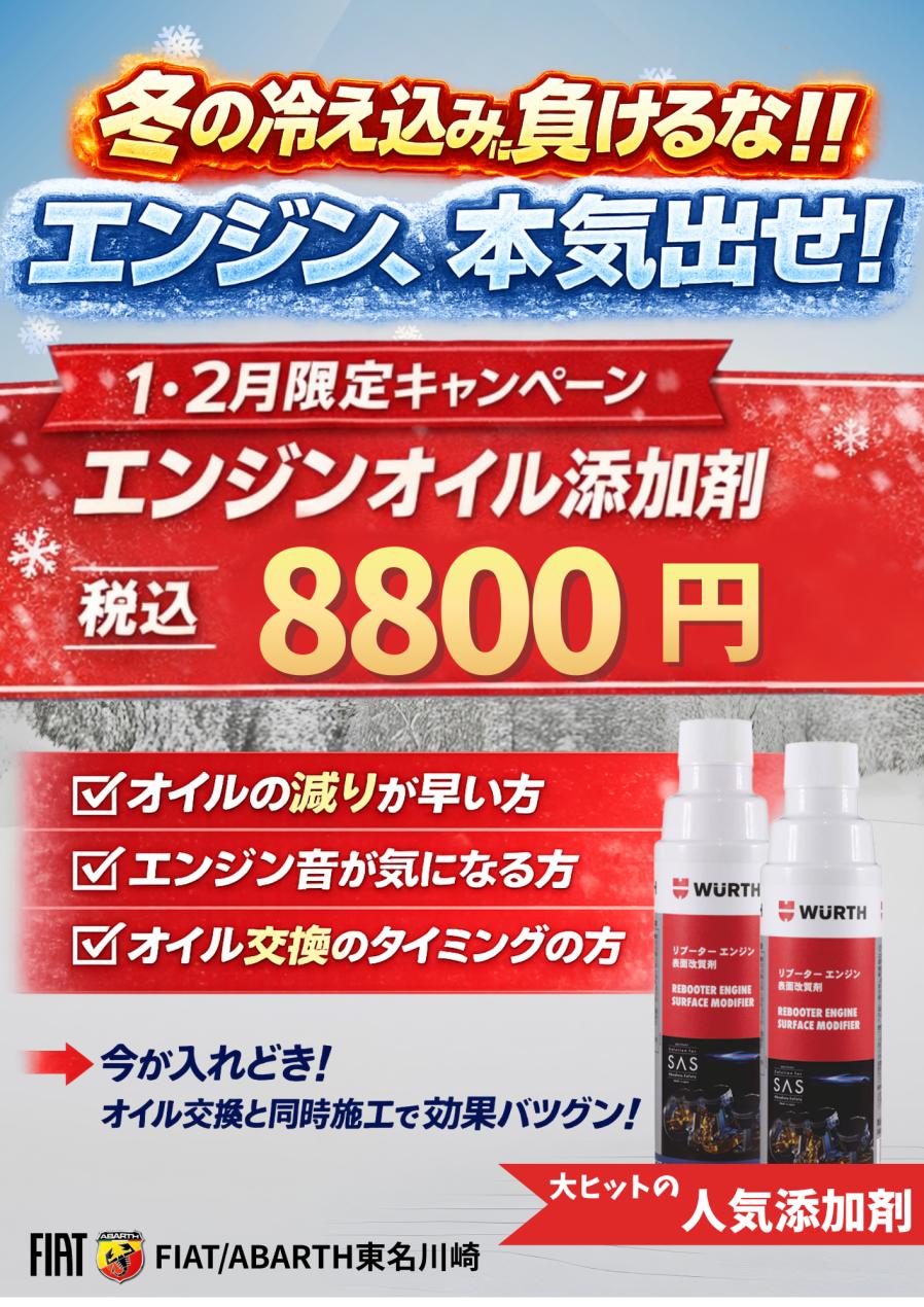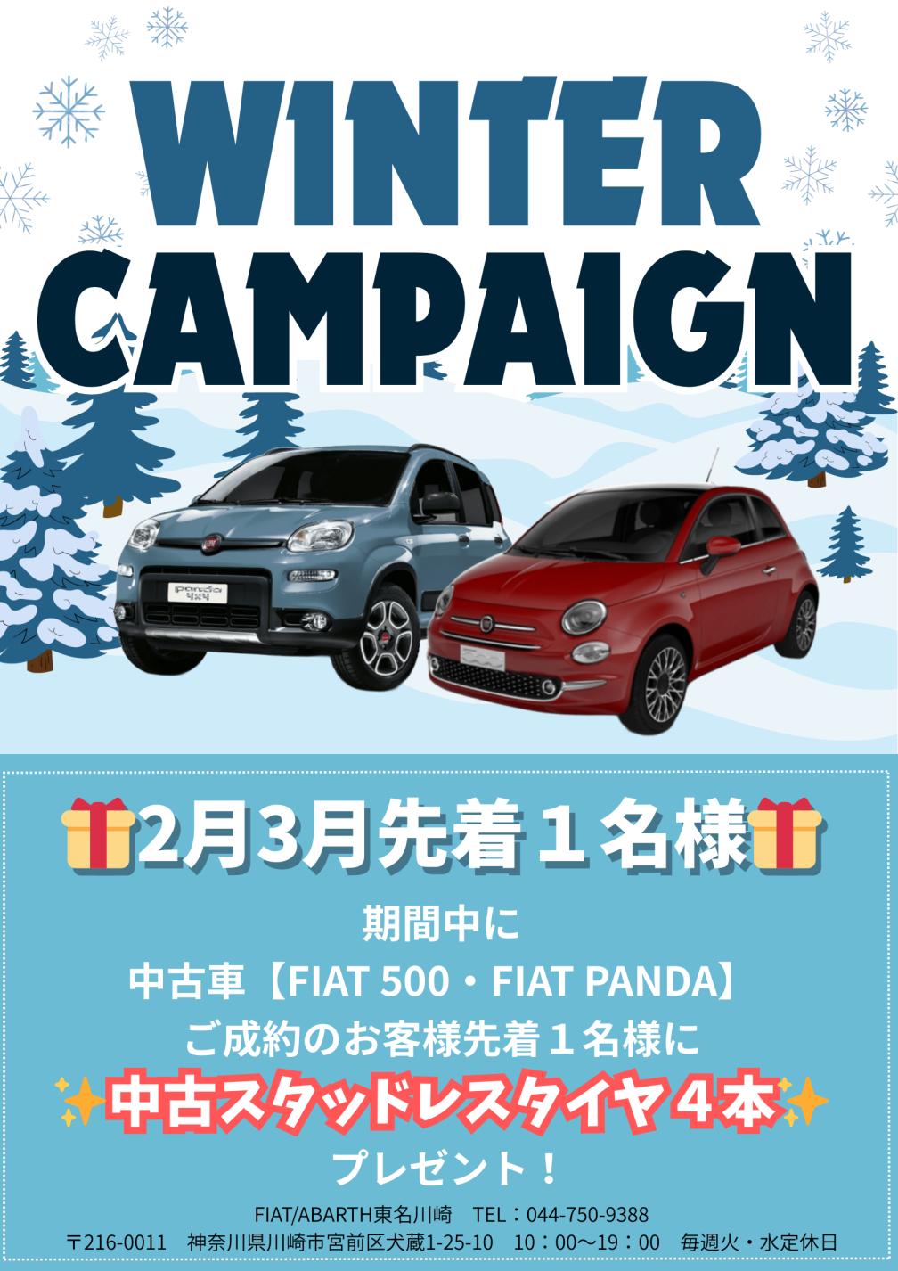 いつもフィアット/アバルト東名川崎ブログをご覧いただきありがとうございます(#^^#)⛄ 冬の下取りキャンペーン 開催 🎅ドライブレコーダー前後・ETC1.0...